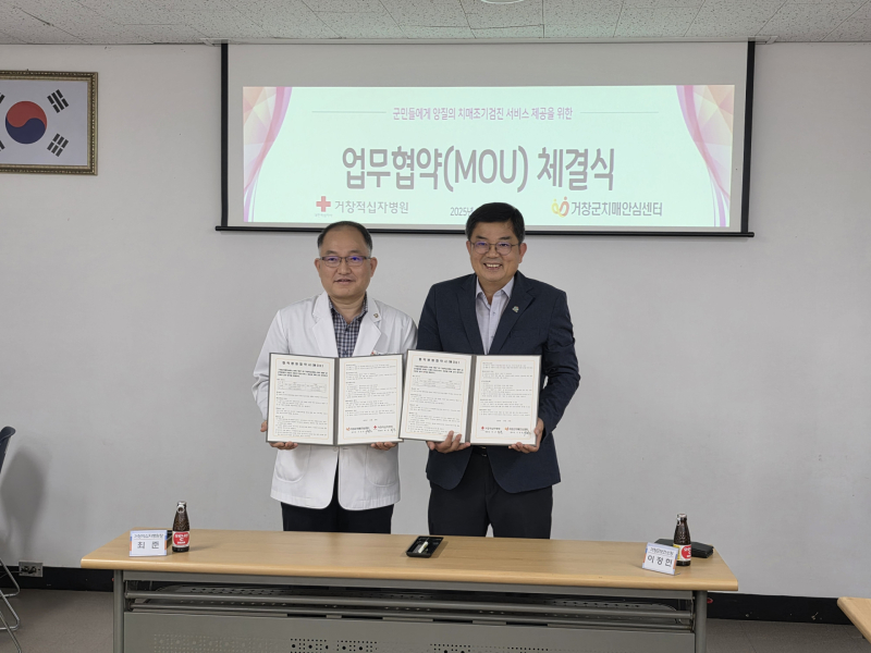 거창군 치매안심센터와 거창적십자병원은 지난 22일 거창적십자병원에서 치매환자 조기진단 및 치료 연계를 위한 업무협약을 체결했다.