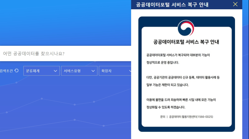 다만 일부 파일데이터는 추가 복구 중이다. 공공기관의 데이터 신규 등록 등 일부 제한된 관리자 기능은 10월 말까지 복구할 계획이다.