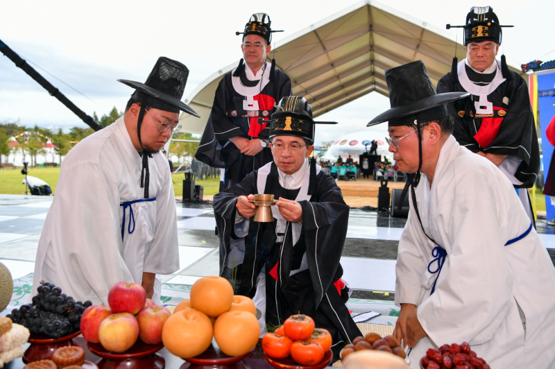 유정근 영주시장 권한대행이 풍기인삼대제를 지내고 있다. 영주시 제공 K-푸드·로컬콘텐츠·체험… 축제가 다시 쓰는 지역관광