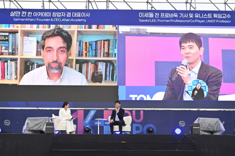 개막식 하이라이트로 진행된 특별 세션 ‘AI와 교육의 미래 – 인간의 역할과 가능성’은 유니스트 특임교수인 이세돌 전 프로바둑기사와 칸아카데미 창립자 살만 칸이 참여한 대담으로 펼쳐졌다. 오프라인과 온라인을 연결한 형식으로 진행된 이번 대담은 경북교육청 공식 유튜브 ‘맛쿨멋쿨TV’를 통해 생중계돼 국내외 시청자들의 높은 관심을 모았다.