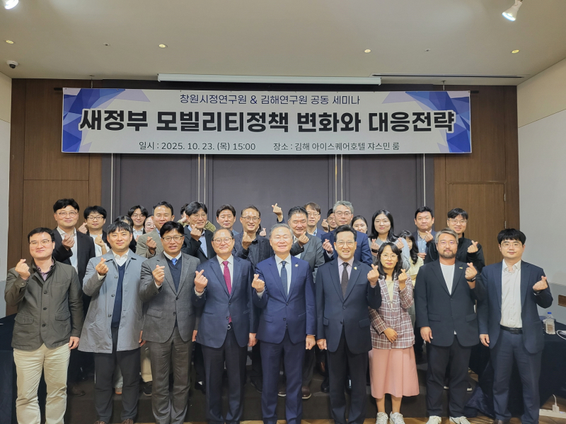 창원시정연구원이 김해연구원과 함께 지난 23일 김해 아이스퀘어호텔에서 ‘새 정부 모빌리티 정책 변화와 창원·김해 대응전략’을 주제로 공동 세미나를 개최했다.