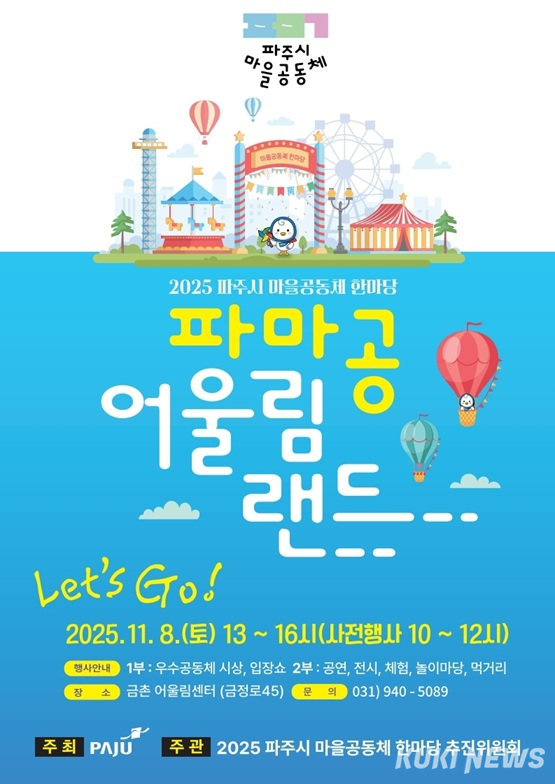 시 관계자는 “이번 한마당은 공동체 구성원들이 직접 기획하고 운영한다는 점에서 의미가 크다”며 “많은 시민이 참여해 파주의 마을공동체가 만들어가는 사회적 가치와 따뜻한 변화를 함께 느끼길 바란다”고 말했다.