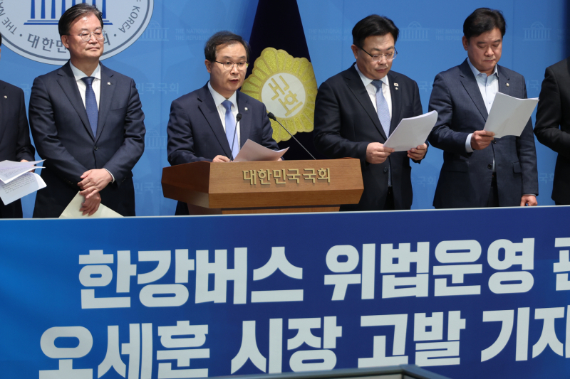 국회 국토교통위원회 소속 더불어민주당 의원들이 26일 오세훈 서울시장을 배임 혐의로 고발하겠다고 했다. 오 시장이 한강버스 사업을 추진하면서 서울도시주택공사(SH)에 재정적 부담을 끼쳤다는 이유에서다.