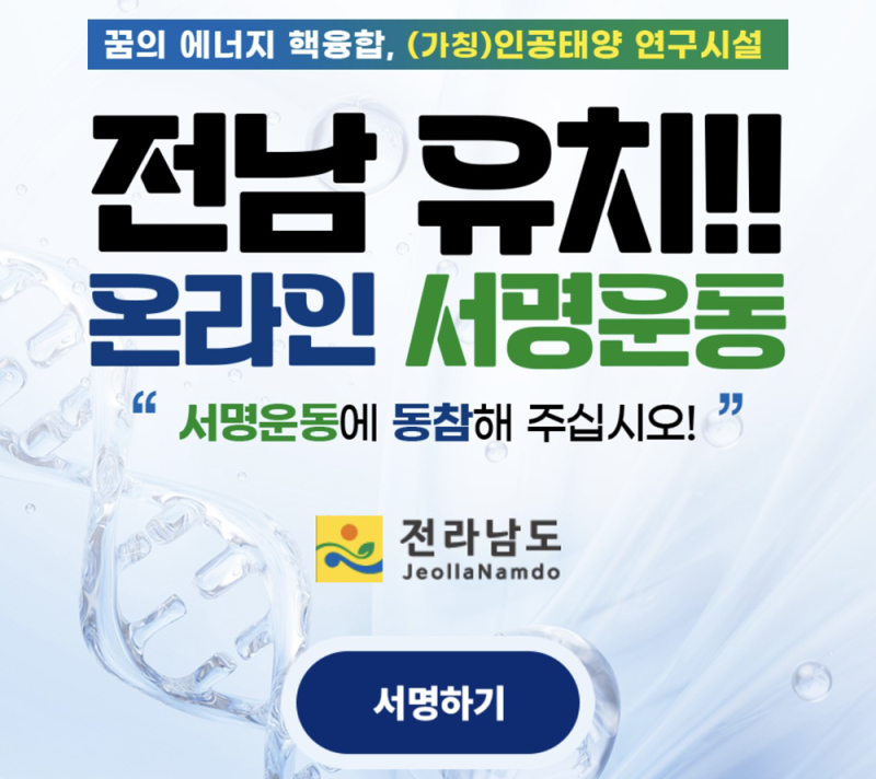 이번 서명운동은 인공태양 연구시설 유치를 향한 시민 공감대를 확산하고 시민이 직접 참여하는 범시민 캠페인으로 추진된다.