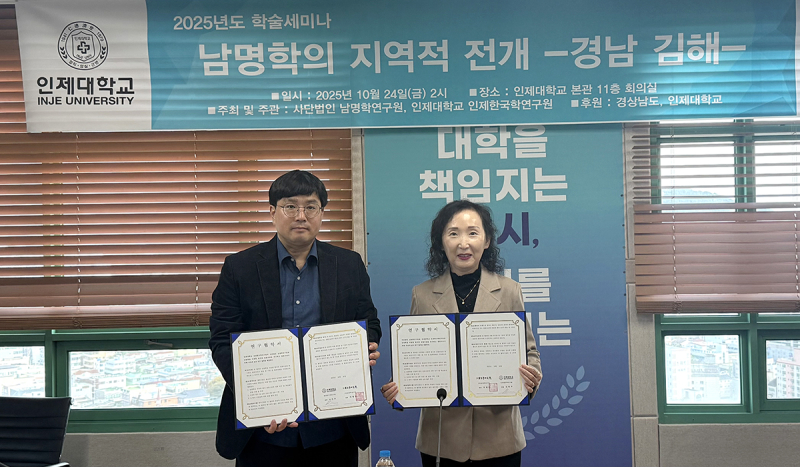 인제대 인제한국학연구원이 (사)남명학연구원과 지난 24일 인제대 11층 회의실에서 ‘남명학의 지역적 전개–경남 김해’를 주제로 공동학술세미나를 개최하고, 남명학 공동연구 협력을 위한 연구협약을 체결했다.
