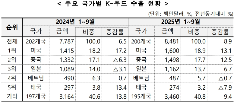 아울러 K-푸드 수출이 품목 다변화, 국가별 전략 이중 트랙으로 성장의 폭을 더욱 넓힐 방침이다.