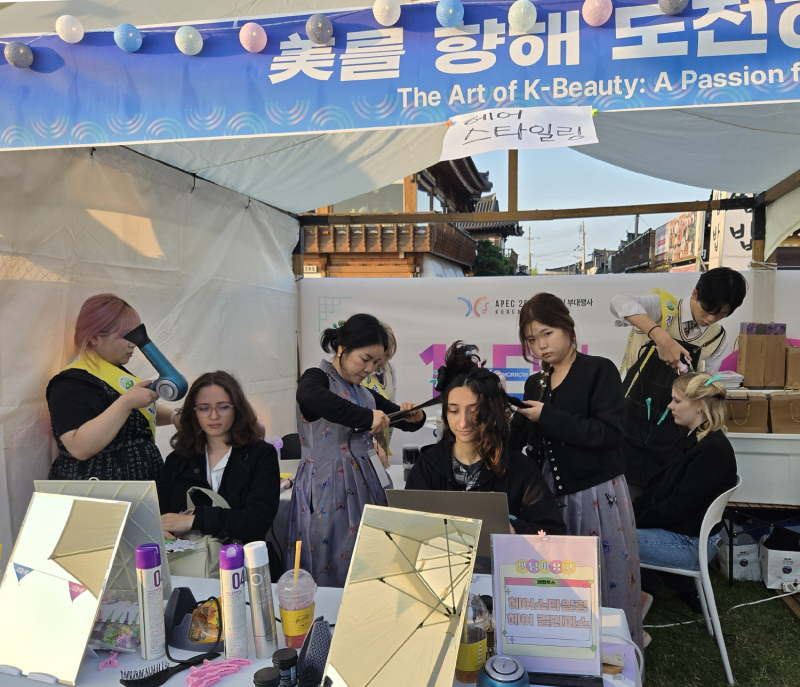 학생들이 직접 운영한 전남미용고 K-뷰티존은 헤어스타일링, 메이크업, 네일아트, 페이스페인팅, 타투, 퍼스널 컬러 진단 등 다양한 체험 프로그램을 제공했다.