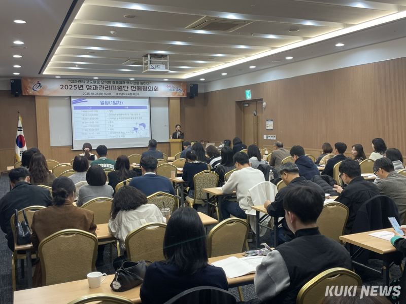 충남교육청은 28일 보령 비체팰리스에서 ‘2026년 성과관리 평가 기본계획 수립’을 위해 성과관리지원단 5개 팀, 66명이 참석한 가운데 전체협의회를 개최했다. 충남교육청은 28일 보령 비체팰리스에서 ‘2026년 성과관리 평가 기본계획 수립’을 위해 성과관리지원단 5개 팀, 66명이 참석한 가운데 전체협의회를 개최했다.