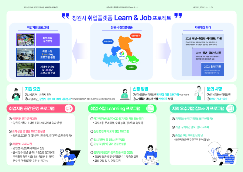 이번 프로그램은 올해 3월부터 12월까지 진행된 ‘런앤잡프로젝트(Learn & Job)’의 일환으로, 창원시에 거주하는 18세~69세 미취업자를 대상으로 했다. 런앤잡프로젝트는 구직자에게 취업 준비를 위한 체계적 지원과 실질적 일자리 정보를 제공하여 지역 내 성공적인 사회진출을 돕기 위해 추진됐다.