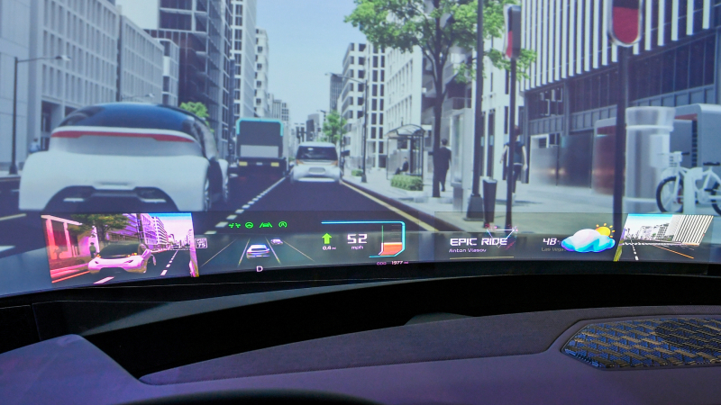 차량용 디스플레이 분야에서 현대모비스는 혁신 기술을 다수 내놓고 있다. 현대모비스는 차량 앞 유리창(윈드쉴드)을 투명 스크린으로 활용하는 ‘홀로그래픽 윈드쉴드 투명 디스플레이’ 기술을 개발하고 있다. 기존 차량용 디스플레이의 개념과 틀을 깨는 이른바 ‘디스플레이 없는 디스플레이’ 기술로 불리는 이 기술은 올해 1월 미국 라스베가스에서 열린 CES2025에서 처음으로 공개됐다. 이 기술은 기존 운전석과 조수석에 장책됐던 디스플레이 장치 없이, 차량 앞 유리창 하단에 차량 사용에 필요한 주행 정보, 내비게이션, 음악 플레이리스트 등 각종 콘텐츠를 선명하게 구현한다.