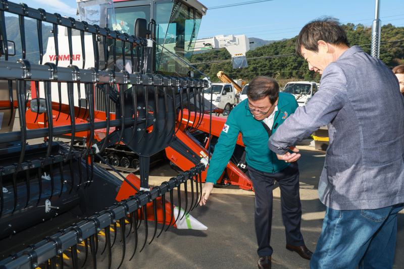 콩콤바인은 산청콩작목연합회에서 장기 임대해 논콩 재배를 지원한다. 운영에 앞서 이승화 군수는 산청콩작목연합회와 간담회를 갖고 다양한 의견을 청취하며 현장의 목소리를 수렴한 바 있다.