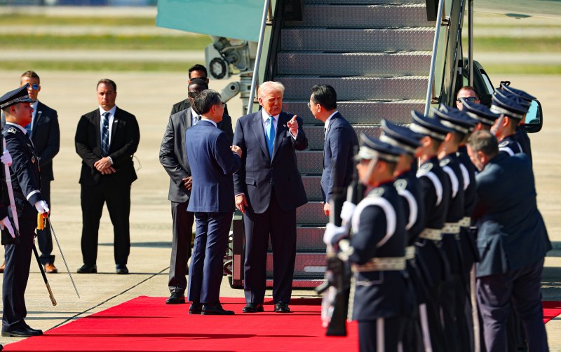 1박 2일간의 본격적인 국빈 방한 일정으로 한국에 온 트럼프 대통령은 이날 오후 아시아태평양경제협력체(APEC) 정상회의 개최지인 경북 경주에서 한미 정상회담을 할 예정이다. 경주까지는 전용 헬기 마린원으로 이동했다.
