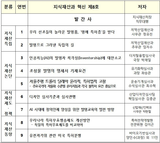 지식재산처는 기관지 ‘지식재산과 혁신, 제8호’를 발간했다고 29일 밝혔다.
