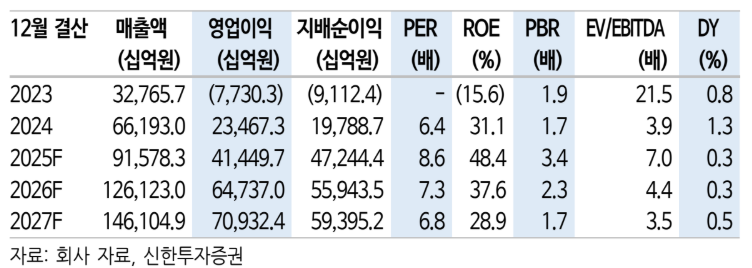 삼성증권은 “HBM의 협의 완료와 함께 디램(DRAM)과 낸드(NAND) 전 제품에 대해 내년까지 고객 수요를 모두 확보 했다고 선언하며 사이클에 대한 우려를 잠식시켰다는 것이 가장 큰 의미가 있다”고 평가했다. 따라서 목표주가를 종전 50만원에서 70만원으로 올렸다.