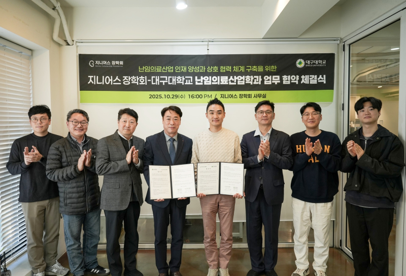 대구대학교 난임의료산업학과는 29일 지니어스 장학회와 난임의료 전문인력 양성을 위한 장학금 조성 및 운영에 관한 업무협약을 맺었다.