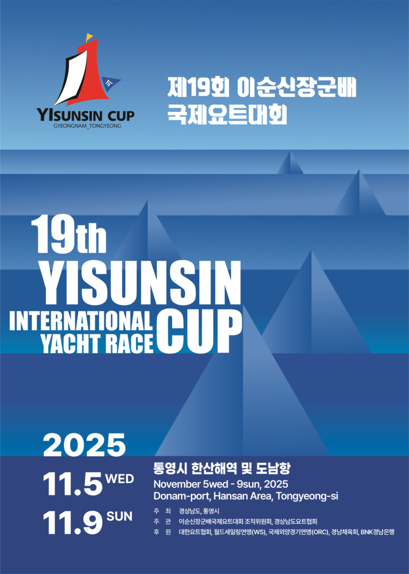 경상남도는 오는 11월 5일부터 9일까지 통영 도남관광지 및 한산해역에서 ‘제19회 이순신장군배 국제요트대회’를 개최한다.