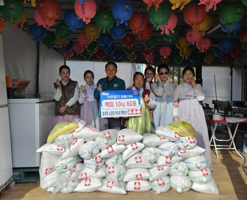 율곡면 노양2구 약수암에서 백춘선씨가 어려운 이웃에게 전달해달라며 백미 10kg 60포(170만원 상당)을 기탁했다.
