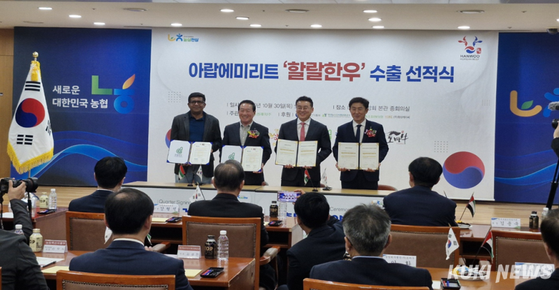 강원특별자치도는 30일 서울 농협중앙회 본관에서 '강원한우 아랍에미리트 수출 선적식'을 개최했다고 밝혔다.
