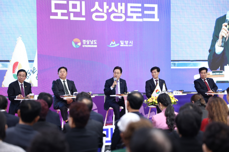 경상남도(도지사 박완수)는 31일 밀양문화체육회관에서 ‘도민 상생토크’를 열고 밀양시민과 함께 지역 현안과 도정 방향에 대해 허심탄회한 대화를 나눴다.