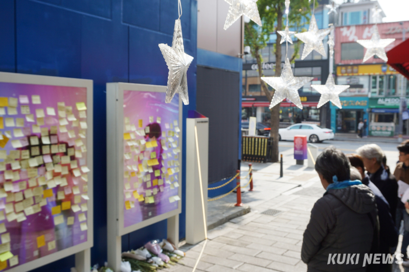 지난 2022년 이태원 참사로 소꿉친구를 떠나보낸 고씨는 “핼러윈이 돌아올 때마다 여길 찾는다”며 “핼러윈이 더 이상 즐겁지 않다”고 했다. 목소리는 담담했지만 눈시울이 붉었다. 이같은 추모 발걸음은 지난 29일부터 계속됐다. 10·29 기억과 안전의 길 사이에 위치한 한 편의점에서 근무 중인 A씨는 “이틀 전부터 애도용 소주를 사려고 가게에 오는 손님들이 많았다”며 “오늘도 세 분 정도 다녀간 것 같다”고 했다.