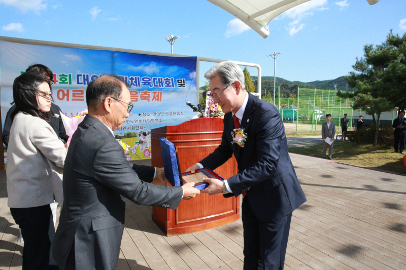 이어 11월1일 열린 대의면민 체육대회 및 어르신 한마음축제에서는 수해 복구에 헌신한 공무원들을 대표해 오태완 군수가 주민들로부터 감사패를 받는 뜻깊은 시간도 마련됐다.
