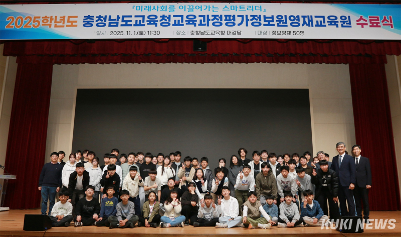 충남교육청교육과정평가정보원 영재교육원은 지난 1일 충남교육청 대강당에서 영재교육원 수료식을 가졌다. 충남교육청교육과정평가정보원 영재교육원은 정보 분야 우수 학생을 조기에 발굴해 인공지능·소프트웨어 미래인재로 육성하기 위해 지난 1년간 진행해 온 교육과정을 마치고 수료생 50명과 영재강사 16명이 참석한 1일 충청남도교육청 대강당에서 영재교육원 수료식을 열었다.