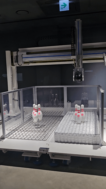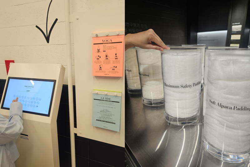R&D센터에서는 실제 제품 개발 과정에 적용되는 다양한 품질 테스트가 진행된다. 내구성 검증을 위한 ‘롤링시험기’에서는 최대 140㎏의 육각 롤러가 매트리스 위를 10만 회 이상 구르며 복원력을 점검하고, ‘낙하 충격시험기’에서는 볼링공을 떨어뜨려 흔들림 없는 안정감을 실험한다.