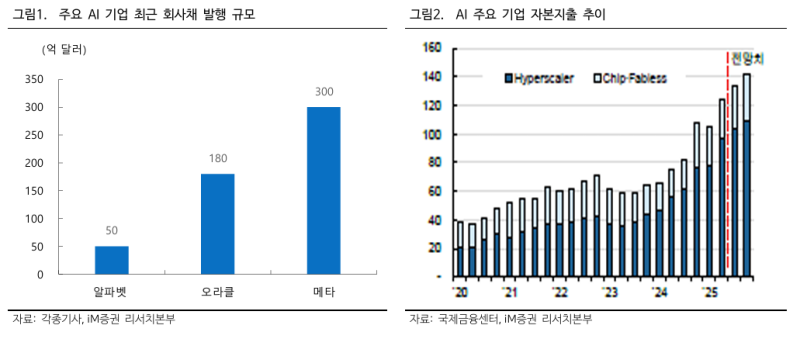 일각에선 오라클 신용부도스와프(CDS) 프리미엄 급등과 미국 AAA회사채 금리 급등을 예로 들며 우려의 목소리를 내고 있다. AI산업에 대한 성장성을 의심하는 건 아니지만 과도한 자본조달을 통한 대규모 투자가 향후 투자과잉 및 부채 증가로 이어질 가능성이 있다는 것이다.