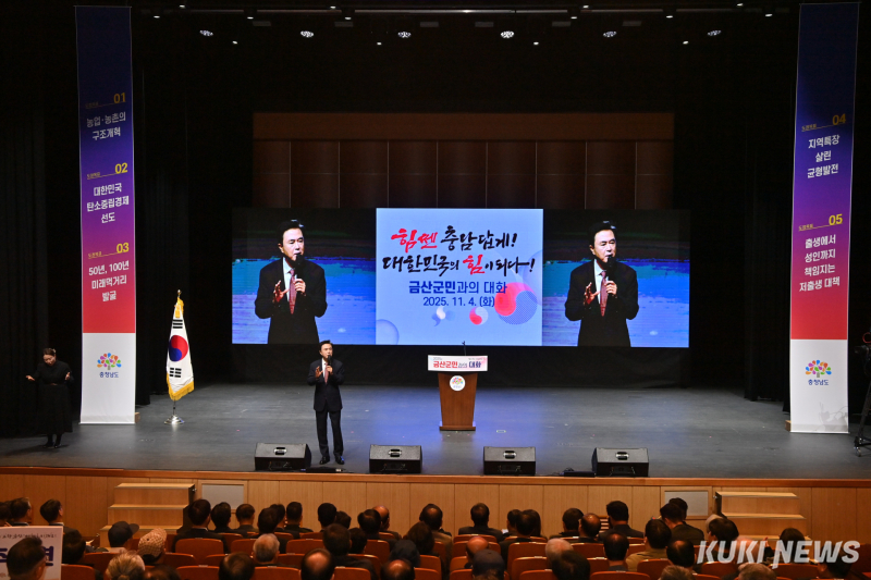 김태흠 지사는 4일 민선8기 4년 차 시군 방문 열 네번째 일정으로 금산군을 찾아 도민과 직접 소통하며 지속 가능한 미래 발전 방안을 논의했다.