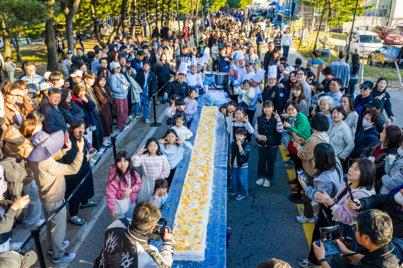 이어진 대형 케이크 퍼포먼스에서는 지역의 제과 명인과 어린이들의 포함한 1000여명의 관람객이 참여해 길이 5m의 대형 케이크가 완성돼 나누며 웃음과 감동이 넘치는 특별한 순간이 만들어졌다.