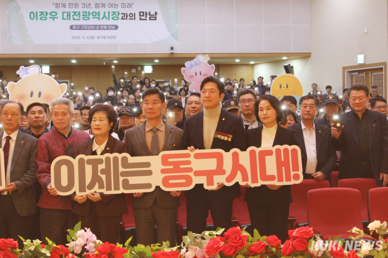 ·4일 대전 동구청사 대강당에서 열린 이장우 대전시장과의 만남에서 '위대한 도시 대전과 함께 이제는 동구시대!' 퍼포먼스를 하고 있다. 사진=명정삼 기자이장우 대전시장. 사진=명정삼 기자박희조 대전 동구청장. 사진=명정삼 기자(왼쪽 여성부터) 대전 동구 의회 오관영 의장, 강정규 부의장, 박철용 의회운영위원장, 김영희 기획행정위원장이 '이제는 동구시대!' 퍼포먼스에 참여하고 있다. 사진=명정삼 기자이장우 대전시장, 박희조 동구청장, 오관영 동구의회 의장, 대전시의회 정명국·송인석· 이상래 의원이 행사 후 구민들과 일일이 인사하고 있다. 사진=명정삼 기자