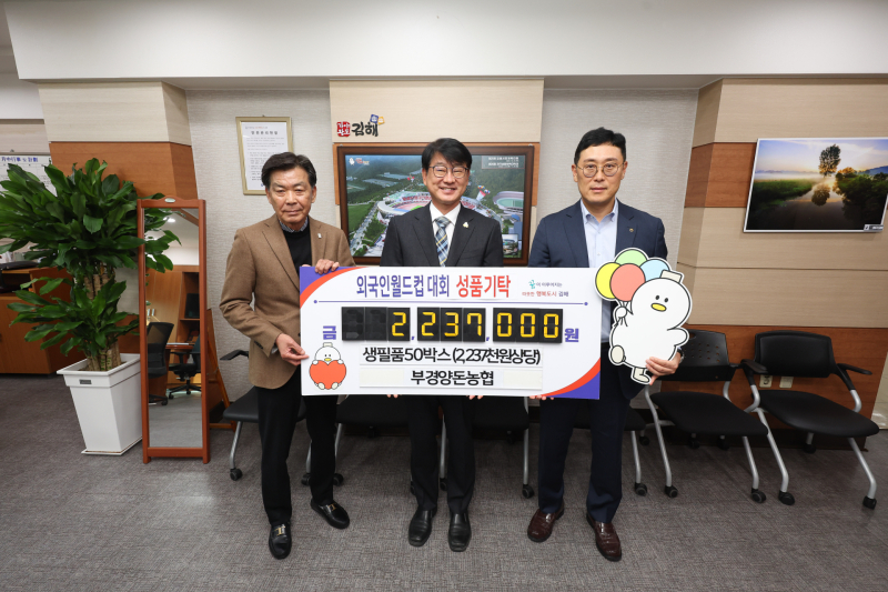 김해 부경양돈농협(조합장 이재식)이 4일 ‘외국인근로자 월드컵대회’를 위해 223만원 상당의 생필품을 전달했다.