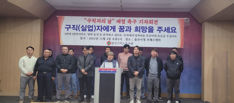 전국구직노동조합이 구직노조는 4일 울산시청에서 기자회견을 갖고 구직자의 날을 법정기념일로 제정할 것을 촉구하고 나섰다.