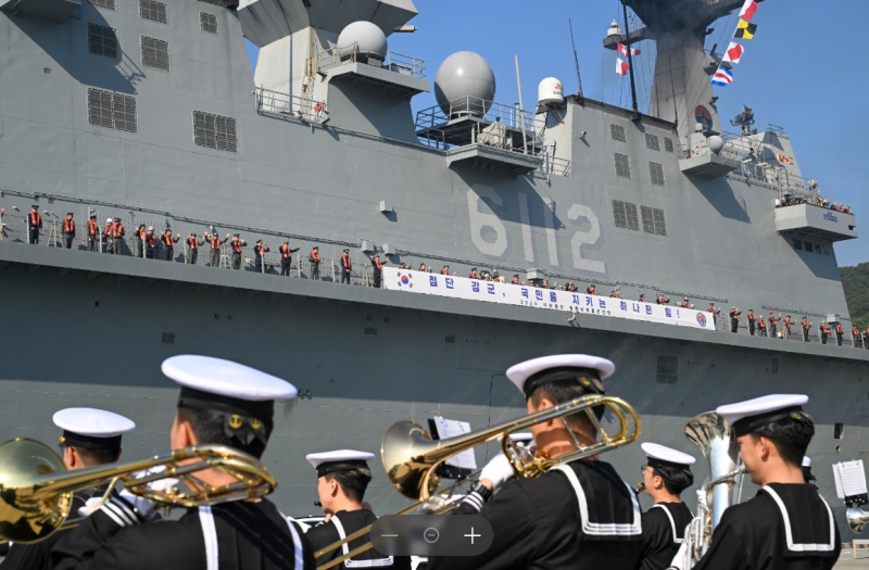 해군은 5일 진해 군항에서 사관생도 합동순항훈련전단 출항식을 열고, 오는 21일까지 합동순항훈련을 실시한다고 밝혔다. 올해로 8회째를 맞는 이번 훈련에는 육·해·공·간호 4개 사관학교 2학년 생도 706명이 참가한다. 생도들은 대형수송함 마라도함(LPH·1만4500t급)과 상륙함 일출봉함·노적봉함(LST-Ⅱ·4900t급) 등에 탑승해 해상기동, 손상통제, 전투배치 등 실무 중심의 해군 작전 과정을 직접 체험한다.