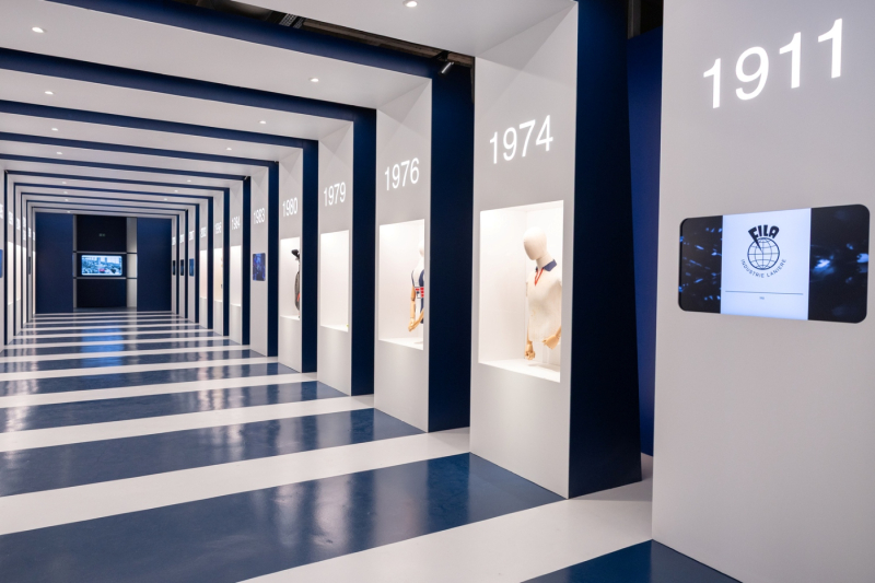 박물관에는 1911년 니트웨어 제조업체로 시작해 1970년대 테니스 중심 브랜드로 도약한 휠라의 성장 과정을 비롯해, 전설적인 테니스 선수 비에른 보리와의 협업, 1974년 ‘화이트 라인(WHITE LINE)’ 컬렉션, 1978년 라인홀트 메스너의 무산소 에베레스트 등정 등 브랜드의 주요 순간들이 전시돼 있다.