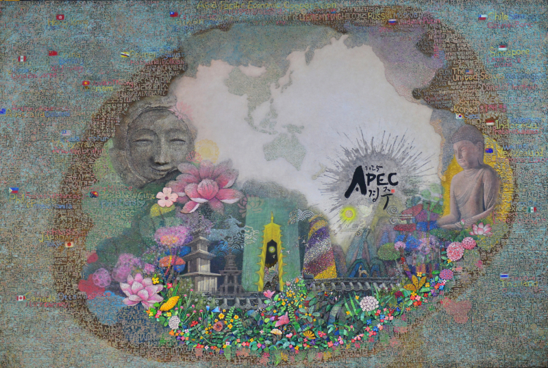 이번 APEC를 위해 무려 배 작가는 1년간 기념도를 준비했다. 기념도의 기획은 대한불교조계종 동화복지재단 이사장 지거스님이 맡았다.