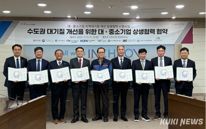 인천시는 5일 인천 지역 대기질 개선을 위해 정부·지자체·공공기관·중소기업이 참여하는 수도권 대·중소기업 지역 대기질 개선 상생협력 협약을 체결했다고 밝혔다.