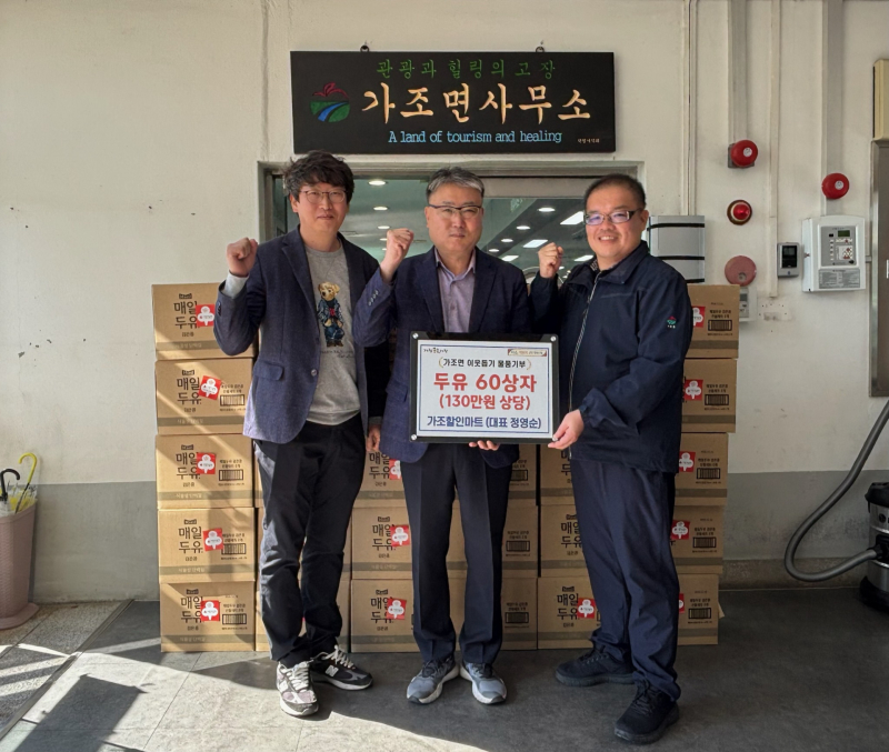 거창군 가조면은 지난 3일 가조할인마트(대표 정영순)에서 가조면 공유냉장고 ‘보물창고’에 두유 60상자(130만원 상당)를 기부하며 지역사회에 나눔을 실천했다.