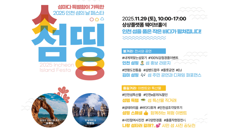 인천시는 오는 29일 상상플랫폼 웨이브홀에서 2025 인천 섬의 날 페스타–섬띵(Seom-thing)을 개최한다고 6일 밝혔다.
