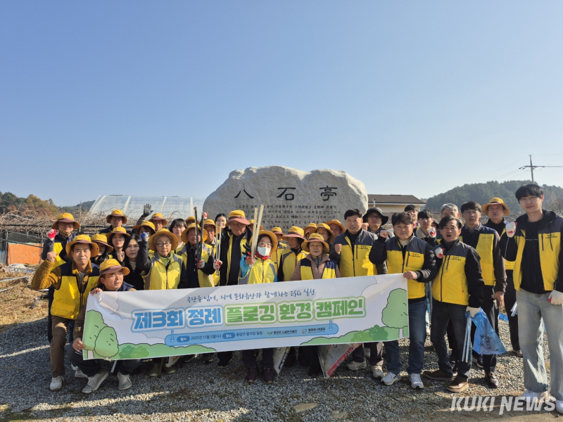 평창군시설관리공단(이사장 최순철)은 5일 봉평면 팔석정 일원에서 임직원과 평창시니어클럽 회원 등 45명이 참여한 가운데 '2025년 제3회 정례 플로깅 환경 캠페인'을 개최했다고 6일 밝혔다.