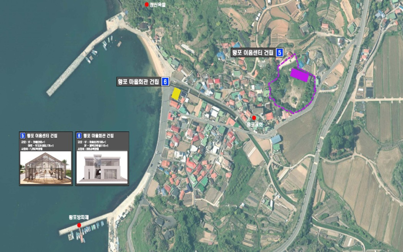 황포항에는 폐교된 황포분교 부지를 활용해 ‘황포이음센터’가 새롭게 조성된다. 또한 노후 경로당과 마을회관을 정비해 주민친화형 생활기반시설을 구축한다. 이를 통해 약화된 공동체를 회복하고, 보다 활력있는 어촌으로 거듭날 전망이다.