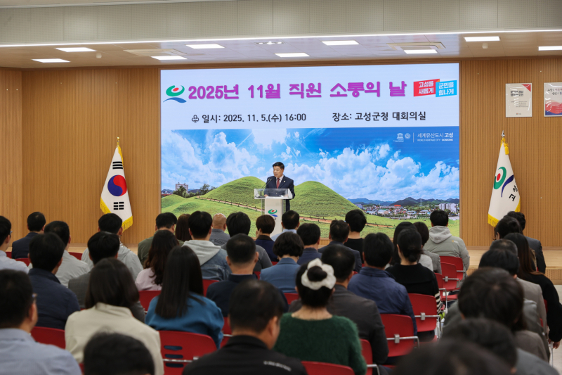 고성군은 5일 군청 대회의실에서 직원 150여 명이 참석한 가운데 11월 직원 소통의 날을 개최했다고 밝혔다.