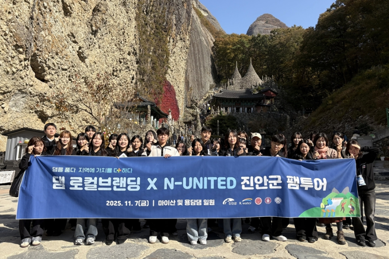 수자원공사는 7일 거점국립대학 교류 연합회(N-United) 대학생들과 함께 전북 진안군과 용담댐 일대를 방문해 ‘댐 로컬브랜딩’의 현장사례를 살펴보고, 지역과 공공이 함께 성장하는 발전 방향을 논의했다.