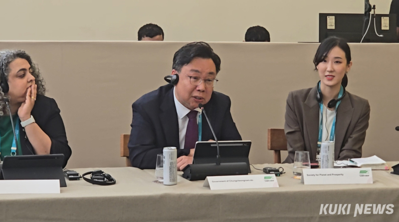 김영명 충남도 환경산림국장이 지난 1일부터 8일까지 언더2연합 아시아·태평양 의장으로서 브라질 리우데자네이루에서 열린 COP30 지역 리더 포럼(COP30 Local Leaders Forum)에 참가해 정의로운전환 정책개발회의에서 ‘석탄화력발전소 폐지지원 특별법’ 제정 사례를 소개하고 있다. 충남도 충남도가 언더2연합 아시아·태평양 지역 대표 자격으로 대한민국을 선도하는 ‘충남형 탄소중립 정책’을 세계 무대에 알리며 국제 기후 리더십을 확대했다.