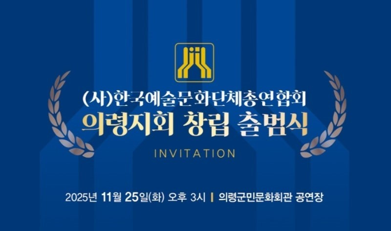 (사)한국예술문화단체총연합회 의령지회(이하 의령지회)가 11월25일 오후 3시 의령군민문화회관 공연장에서 창립 출범식을 개최한다.