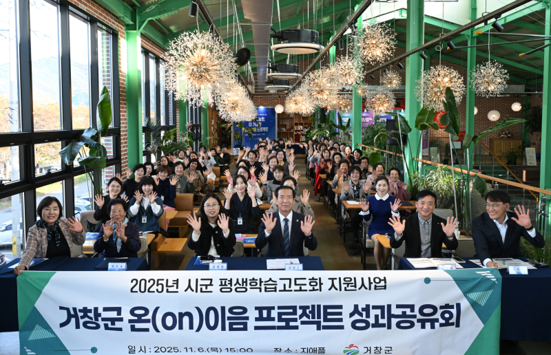 거창군은 지난 6일 지애플 카페에서 평생학습 강사, 학습자, 활동가, 대학 관계자 등 67명이 참석한 가운데 ‘2025 뭐든知 가능한, 더 거창한 온(on)이음 프로젝트 성과공유회’를 개최했다.