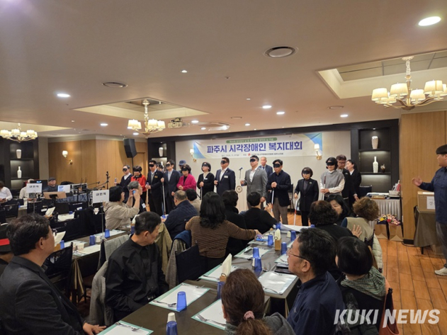 경기 파주시는 지난 7일 금촌역 앞 센트리움웨딩홀에서 ‘제46회 흰지팡이의 날’ 및 ‘제99주년 점자의 날’ 기념 파주시 시각장애인복지대회를 개최했다고 10일 밝혔다. 경기도시각장애인연합회 파주시지회가 주관한 이날 행사에는 지역 내 시각장애인과 가족, 자원봉사자, 시민 등이 참석했다.