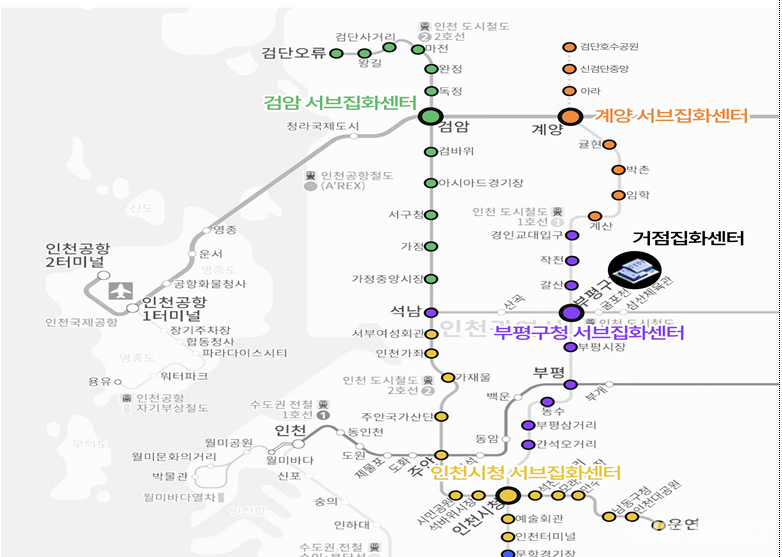 시는 이번 2단계 사업 확대를 통해 인천지하철 1·2호선 내 집화센터를 기존 30개 역에서 전체 역사인 60개소로 확충하고 159명의 운영인력을 배치했다.