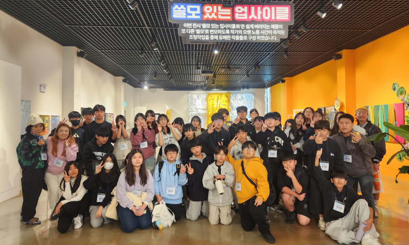 학생들은 실제 적용사례로 꾸며진 세제 리필 스테이션(자판기), 우산수리센터, 폐목재를 활용한 목공 교육장과 커피박과 폐조개·자개를 활용한 풍경 만들기 등 폐자원이 새로운 제품으로 재탄생하는 과정을 직접 경험했다.