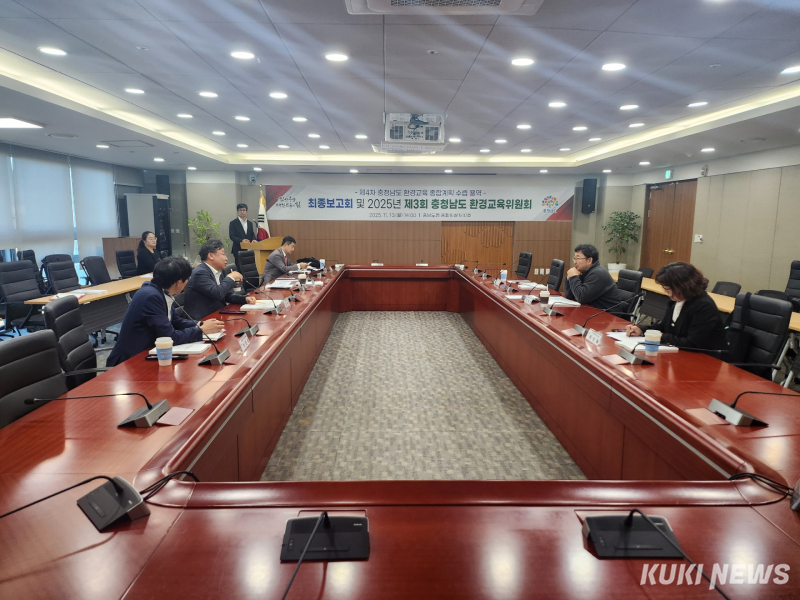 도는 10일 도청 중회의실에서 김영명 도 환경산림국장과 공주대학교 이재영 교수, 나사렛대학교 박미옥 교수 등 13여 명이 참석한 가운데, ‘제4차 충남도 환경교육 종합계획 수립 연구용역 최종보고회’를 개최했다. 충남도가 향후 5년(2026-2030)간의 환경교육 방향을 최종점검하는 시간을 가졌다.